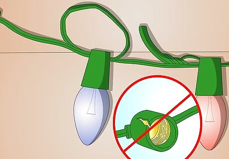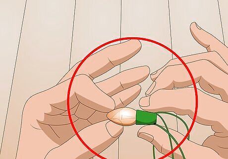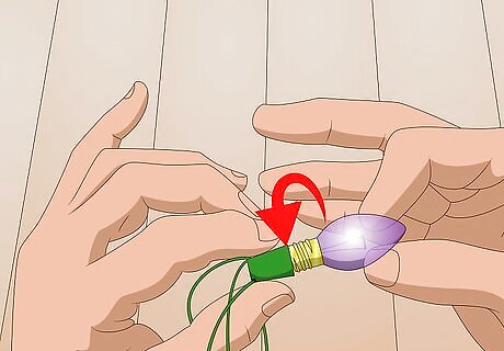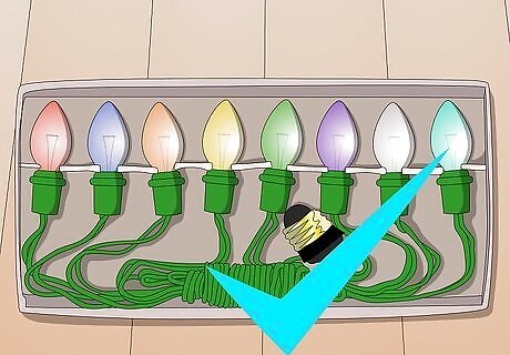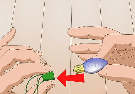 Replace dead bulbs. Remove any bulb that you know for certain is dead, either because it is an isolated unlit bulb in a strand of otherwise functioning bulbs, or it is clearly shattered, burnt-looking, or otherwise discolored. Gently remove a dead bulb by grasping it between two fingers and pulling it up out of the socket. Some bulbs may require you to twist the bulb before pulling up. Replace any individual dead bulb with a new one of equal size and wattage, placing it firmly down into the socket.