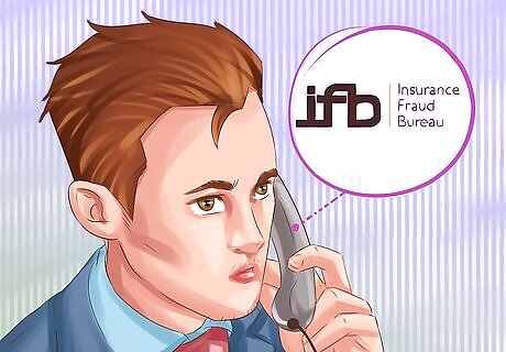 Contact your state's insurance fraud bureau. Once you determine which agency in your state investigates fraud, find out if they have a form or a hotline for reporting your suspicions anonymously. Insurance fraud agencies typically have phone numbers for citizens to call with tips about scams or suspicious activity. If you thought you bought health insurance, but now the company you bought the insurance from won't answer the phone and your medical bills aren't being paid, you may be the victim of a fraudulent health insurance scheme. These sort of fraudulent activities should be reported directly to your state's insurance fraud bureau.