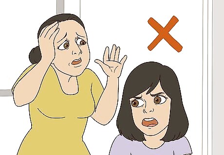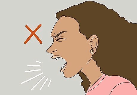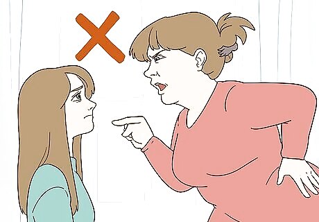 Don’t raise your voice. Studies have shown that yelling at your teenager, no matter how much you may believe they deserve it, actually makes behavior worse. It might feel good in the short term, but parenting is about improving your child’s behavior, not making yourself feel good. No matter how hard it is, don’t let yourself yell back, even if your child is yelling at you at the top of their lungs.