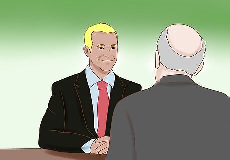 Dress appropriately for the interview. A job interview is a sort of performance. As such, you'll want to make sure you dress the part for the role you want to obtain. Some companies have a more casual approach to work apparel, but it's best to err on the side of caution and dress for success. A 40 year old suit may make you look out of touch with other contemporary job seekers. Opt for modern-styled clothing: a slimmer cut suit for men, and a modern blouse and skirt or pant suit (without shoulder pads) for women. Make sure your hairstyle, makeup, and fragrance (or absence of fragrance) are appropriate for both the industry and the position you're trying to enter.