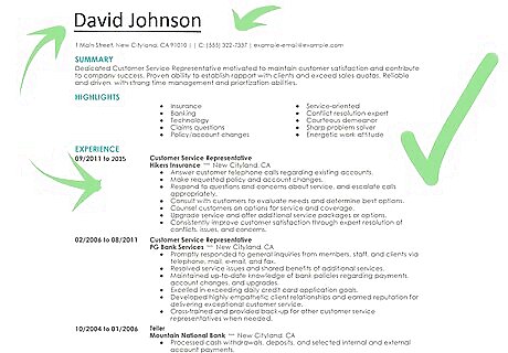 Polish your resume. Your resume is the first thing an employer sees, and it could be what makes or breaks your chances for an interview. Make sure there are no significant gaps in your resume (or explain any gaps that may be problematic), and be sure to list your work experience and education in reverse-chronological order (most recent first). Choose a traditional, easy-to-read font like Arial, Calibri, or Times New Roman. Use a normal font size as well: either 10-point or 12-point is ideal, though you can go up to size 14 or 15 for your name to make it stand out. Include your contact information at the top of the page (including a URL for your LinkedIn page, if you have one). Restrict your resume to one or two pages. Your resume should highlight your qualifications, not tell your entire life story.