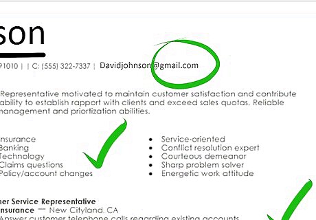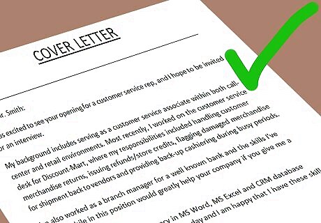 Write a strong cover letter. In addition to your resume, your cover letter essentially sells you to the potential employer. It's your place to elaborate on what your resume summarizes. It's also a good opportunity for you to convey your personality and overall career accomplishments to an employer. It's worth taking the extra time to compose a strong, compelling cover letter to accompany your resume. Check for spelling and syntax errors. These can quickly turn off an employer, as they may look unprofessional. Use some of the key words and phrases that the employer used in the job advertisement. Don't pull entire sentences, but incorporate certain terms (like "management of personnel" instead of "director of personnel"). Make sure your cover letter has an opening paragraph explaining who you are and why you're interested in/qualified for the job. Your closing paragraph should politely request an interview or follow-up of some type. The body of your cover letter, which comes between the opening and closing paragraphs, should highlight and expand on some of your resume's most compelling points.
