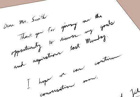 Send a follow-up message after the interview. Depending on the position and the company you interview for, there may be a handful of other candidates or there could be dozens. Either way, you'll want to set yourself apart from the rest as a professional and a likable individual. The best way to do this is to follow up with a polite and respectful message. If you had a phone interview, send a quick email expressing your thanks and reiterating your interest in the position. Be sure to mention the interviewer, the position, and the company all by name. For an in-person interview, jot down each individual's name who interviewed you and one or two key questions they asked. Send a hand-written thank-you note to each person. Be sure your thank you-note addresses each interviewer by name and the main topic they brought up. For example, your note may read, "Dear Andrew, thank you for the enjoyable conversation on quality control last Tuesday. Looking forward to continuing the discussion in the future and learning more about the company."