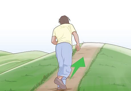 Go to the top of the hill if you’re not already there. If you’re standing at the bottom of the hill, you can’t very well roll down it. If there’s a sidewalk, you can take it, or you can climb straight up the hill if you prefer. As you’re climbing the hill, keep an eye out for anything you don’t want to roll through on your way down.