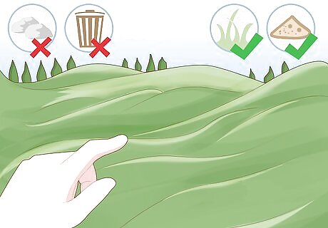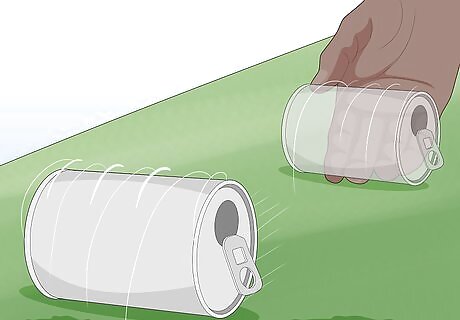 Roll objects down the hill. When you get tired of rolling yourself, try rolling different objects down the hill. For instance, you can roll an empty can and a full can at the same time to see which one gets to the bottom first. You can also try this with different size balls, hula hoops, juice bottles, or anything else you have on hand. Just be sure to pick up any trash before you leave the hill.