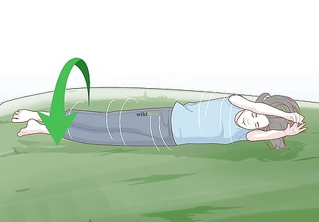 Lay down parallel to the hill with your arms crossed on your chest. There are plenty of variations on how to roll down a hill, but the most common is to cross your arms over your chest. This will help you roll faster, and it will help keep you from landing on one of your arms at an angle that could hurt you. You could also hold your arms up above your head if you prefer.