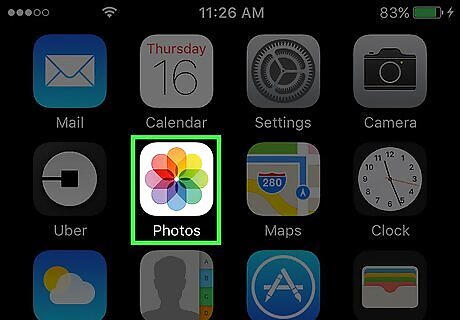 Open your iPhone's Photos. Photos is the multicolored pinwheel icon on the Home Screen.