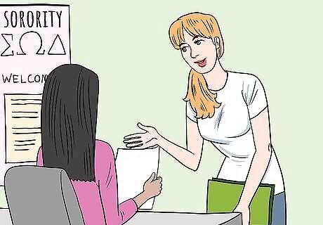 Explore the different sororities at your school. Look into which sororities have chapters at your school. During recruitment, you will have the opportunity to talk with several members of each sorority. Researching ahead of time will make you aware of the types of social events and charitable organizations each sorority is involved in so you will know what to ask about during rush. If possible, go to charity events or other extracurricular activities put on by sororities on campus prior to rush. This will give you an opportunity to get to know some of the members ahead of time. After submitting your registration, you may be assigned a recruitment counselor who can provide you with some resources to help you familiarize yourself with the sorority chapters at your school.