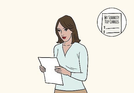 Submit your preference list at the end of the process. After the final round of rush, you will make a final list of your top choices. Depending on your school’s protocol, you will likely submit the names of the two or three sororities you most want to join. This can be an emotional time so it can be helpful to make a pro and con list to help you decide what qualities are most important to you.