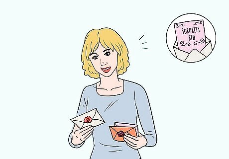 Receive your bids. At the end of rush, after you have submitted your preference list, you may or may not receive bids to join one or more sororities. You might receive bids from several sororities, one bid from one sorority, or you may not receive a bid at all. If a sorority on your list does not fill up, you may also receive a “snap bid,” a bid to join a sorority after the initial bids are distributed.
