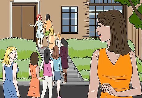 Visit several sororities during the recruitment rounds. Participate in all the rounds to help you narrow down which sorority is right for you. Usually, there are 3 to 5 rounds that are identified by a theme or activity, each lasting about 30 minutes to 1 hour. As part of the first round of rush, you will likely attend open houses at several sororities. Some universities will require that you visit every open house during the first round to maintain rush eligibility, so make sure that you stick to a schedule and follow the rules. The first round is usually the shortest, meaning you will spend about 30 to 45 minutes at each sorority. The middle round or rounds of rush generally focus on teaching potential members about each sororities’ social events and philanthropies. The middle round or rounds usually involve a skit that allows each sorority to express their personality and values. The final round, often called Preference Night, tends to last longer than the earlier rounds (about 1 hour), giving you more time to get to know the members. This round is usually dressier and more serious in tone, providing members with the opportunity to share about their sorority experience.
