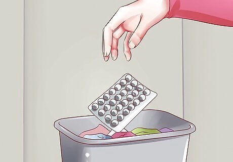 Discard the pack and begin a new pack of birth control pills. Once you reach the end of your 21 active pills, skip over the seven inactive pills and move on to the next pack. By skipping over the inactive pills and beginning a new pack of active pills, you will effectively convince your body that it is not time to have your period. Continue working through these new 21 pills, and then move on to your next pack of active pills to continue keeping your period at bay.