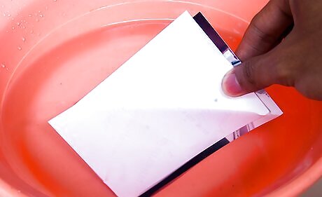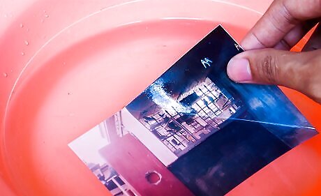 Soak any photos that are stuck together. Water will not harm most photographs, as exposure to water is actually part of the chemical development process for conventional photographs. If photographs have stuck together: soak the photographs for at least an hour in lukewarm water. Gently peel apart.