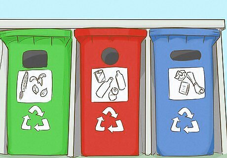 Reduce, reuse, and recycle your waste and trash. Protecting the environment helps protect the wetlands, especially since trash can make its way into the water. The best and easiest way to protect the environment is by limiting your household waste. If a product is recyclable, separate it from your other trash to be recycled. Try to reuse as many items as possible, and reduce the amount of plastic and other non-biodegradable waste that you produce. If you want to reduce plastic waste that contaminates wetlands, switch from using individual plastic water bottles to a reusable water bottle, and purchase a set of reusable grocery bags. Consider donating old clothing and furniture that would otherwise be thrown away to charity to prevent the amount of waste in landfills, which are sometimes built on wetlands. If your household produces a lot of food waste, consider creating a compost pile in your yard to repurpose old food scraps into fertilizer.