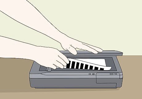 Place the image or document you want to scan face-down in the scanner. Several small hashes on the glass plate of the scanner should tell you where to position the document you're scanning.