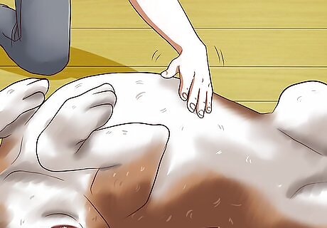Rub or scratch the dog's stomach. After your dog has presented its stomach and you feel that it is comfortable and relaxed, you can begin to rub its belly. As you rub the dog's stomach keep an eye on its behavior, looking for signs of enjoyment or discomfort. It's normal for some areas of the stomach to cause your dog to kick when you scratch them. Always scratch or rub gently as the stomach is a sensitive area on a dog. Feel free to rub your dog's stomach however you'd like. Try rubbing in circles, short scratches, or longer motions up and down the whole length of your dog's stomach.