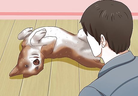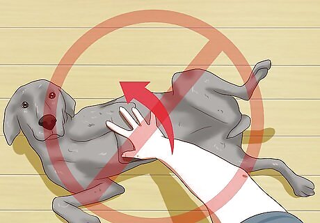 Don't force a belly rub. If your dog appears uncomfortable or you are unsure about your dog's level of comfort you should avoid scratching its stomach. Forcing an uncomfortable dog to allow you to scratch its stomach can cause unneeded stress for the dog and can even result in it biting you. Never try to flip your dog on its back to rub its stomach. Always allow your dog to present its stomach on its own. Forcing a belly rub can make your dog mistrust you.