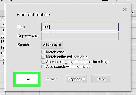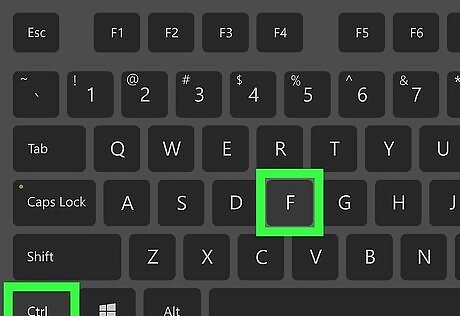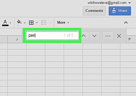Press the search combination on your keyboard. This will open the search box in the upper-right corner of your spreadsheet. On Windows, press Control+F. On Mac, press ⌘ Command+F.