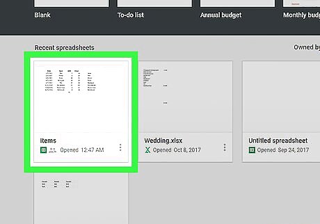 Click a spreadsheet on your saved files list. Find the spreadsheet you want to search, and open it.