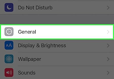 Scroll down and tap General. You may have to scroll down 1 or 2 screens to find it.