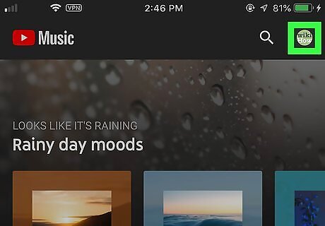 Tap your profile picture on the top-right. You'll see a thumbnail of your picture in the upper-right corner of YouTube Music. It will open your navigation menu.