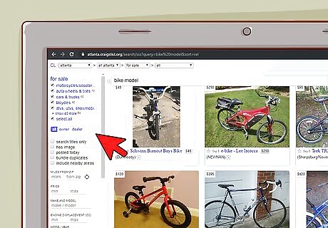 Use the Bicycle Bluebook to check your bike’s price based on condition. Type your bike’s model into the search bar and select your bike’s specific features and condition to get a sense for what your specific bike may be worth. Compare the Bluebook value with what you saw in your initial search to get a sense for whether you will be able to sell your bike for under or over the market value. Bicycle Bluebook is a lot like the Kelley Bluebook for cars. They take sales data from multiple sources to determine what a specific bike is probably worth. To learn more, visit them at at https://www.bicyclebluebook.com/.