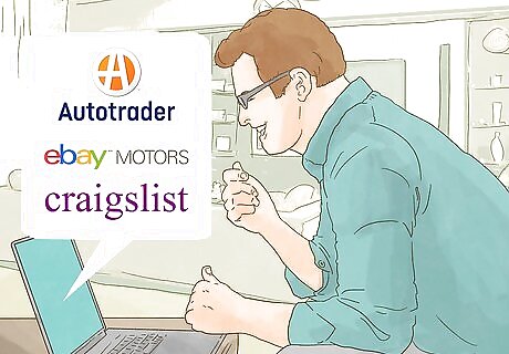 Advertise your car on applicable websites. Post your ad online. Be sure to add all of your pictures as well. You can post this ad on many different websites, from car-specific sites, like eBay Motors and Cars.com, to more generalized sites, like Craigslist and Facebook. Make sure to include contact information, such as a phone number or email address. Car-specific sites like Autotrader, eBay Motors, and Cars.com will help you reach a much larger audience than Facebook or Craigslist. These should be your first choice for selling rarer or higher-value cars. Alternately, Craigslist and Facebook will allow you keep your audience mostly in your area, allowing for easier meet ups with potential buyers. They're also usually better sites for posting lower value or heavily used cars. You can look for local Facebook "yard sale" groups and post your ad there. Post the ad on your own website if you have one.