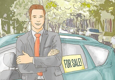 Put a "for sale" sign on your car. You can then continue to drive the car or leave it on your property within view of the road so that passers-by can see it. Make sure to include contact information, like a phone number, on the sign.
