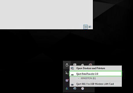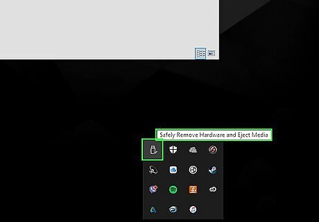 If your flash-drive is blinking, wait for it to stop. Then, on your taskbar, there should be several icons. Find the one that has a pop-up "Storage Device Detected".