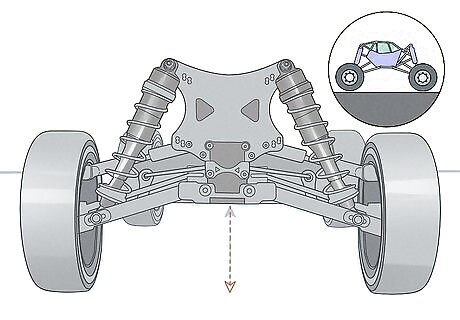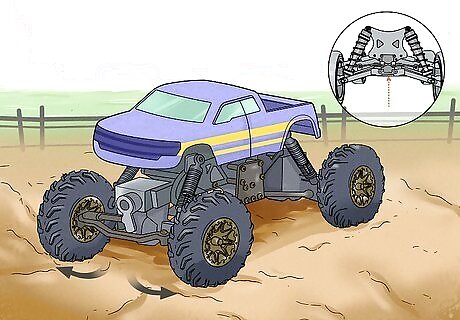 Increase overall droop for bumpy tracks or to increase jumping ability. Higher overall droop will give your RC car better ability to jump higher and handle rough, bumpy terrain. Set both your front and rear droops higher if this is your goal. For example, if you run your RC car on outdoor dirt tracks that have bumps and jumps, you’ll probably appreciate having less droop.