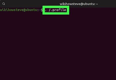 Load the startup file. To make the changes take effect, you can either open a new terminal window or run the following command at the current prompt: bash: . /.profile. csh: source ~/.cshrc.