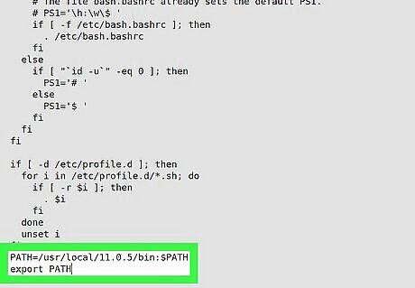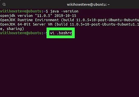 Add the path variable to your source file. The syntax is different depending on your shell: First, if you're using Vi, press i to get into insert mode. bash: Type PATH=/usr/local/jdk1.8.0/bin:$PATH onto one line, but replace /usr/local/jdk1.8.0 with the actual path to Java. On the next line, type export PATH. csh: Type set path=(/usr/local/jdk1.8.0/bin $path) on its own line, but replace /usr/local/jdk1.8.0 with the actual path to Java.