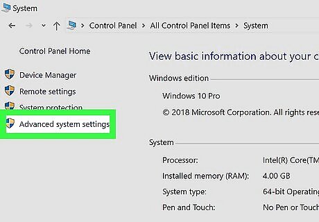 Click Advanced system settings in the left column. Depending on your settings, you may be prompted to enter your administrator password to continue.