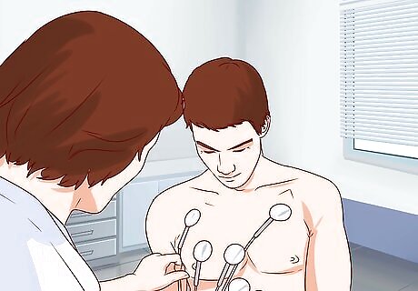 Allow the doctor to prepare you. You may be asked to take off your shirt or put on a hospital gown. This will make it easier for the doctor to put the electrodes directly onto your skin. If your skin is dirty, the doctor may clean and wipe the areas where the electrodes will go. If you have hair on your chest, arms, or legs where the doctor wants to put the leads (electrodes), you may be shaved first. This will help the leads stick correctly.