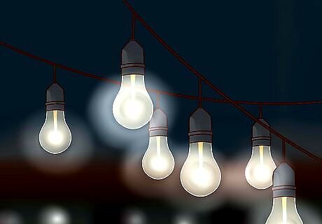 Set up lights. If your garden party is going to go past sunset, create soft and romantic lighting. You can use battery powered lanterns or outdoor string lights. You can decorate your string lights with flowers and other embellishments. You can set up candles around your party to create soft lighting. You can even set up torches around the space. Consider lighting a path to and from the party.