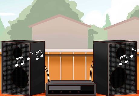 Set up a sound system. Before the party, set up a system to play the music. Make sure you have enough extension cords for your speakers to reach or that you have a wireless speaker. Test the speakers before hand to make sure they work and are loud enough for your party.