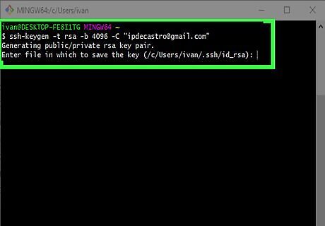 Create an SSH Key. In order to establish a secure encrypted connection between your GitHub account and Git Bash on your computer, you must generate and link an SSH key. In Git Bash, paste this code but substitute in the email you used with your GitHub account: ssh-keygen -t rsa -b 4096 -C "[email protected]” You will then be prompted as to where you want to save the key. The default location will suffice so just hit ↵ Enter. Next, Git Bash will ask you to enter and confirm a passphrase. While you don’t have to include one, it’s highly recommended that you do.