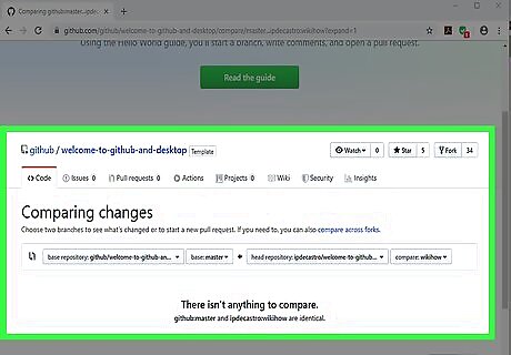 Merge with the master branch. Go back to GitHub and you should soon see a message pop up with your push. Hit "Compare & pull request". On this page you will have the opportunity to review your changes, as well as change your commit message and add comments. Once everything looks in order, and GitHub doesn’t detect any conflicts, go ahead and make the request. And that’s it! Now it will be up to your other contributors and the owner of the repository to review your change and then merge it with the master repository.