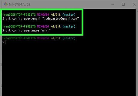 Create a user. Next you should create a user to track who made the changes to the repository. Run the following two commands. $ git config user.email “[email protected]” and $ git config user.name “Your Name”. Make sure the email you use is the same one that's on your git hub account.