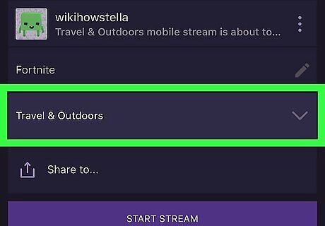 Tap the drop-down menu. You need to select a category to stream in, like Just Chatting or Makers&Crafters.