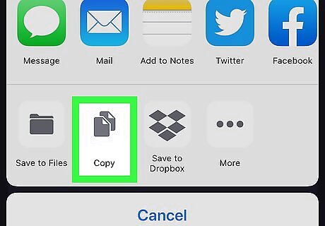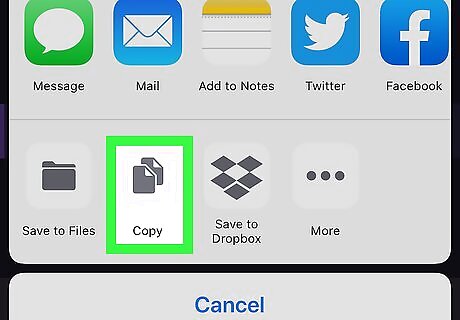 Tap the upwards-pointing arrow coming out of a box. You'll find this at the top of your screen. A window of sharing options will load.
