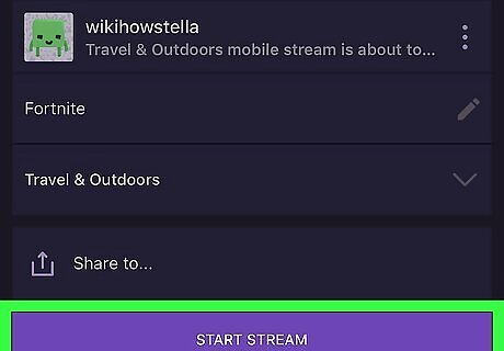 Tap Go Live. You'll find this under your avatar. Before you can continue, you may have to allow the app to use your camera and microphone. You may also be presented with a page that will welcome you to mobile streaming that gives you a few tips.