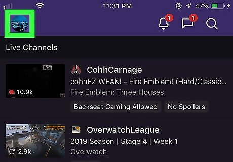 Open Twitch. This app icon looks like a white chat bubble on a purple background. You can generally find this on your home screen. Log in if prompted.