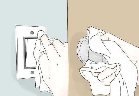 Disinfect high-touch surfaces to kill any potential pathogens. Keeping high-touch surfaces such as countertops, doorknobs, cellphones, and toilet flush handles disinfected will help minimize the risk of getting sick. Use disinfectant wipes or a disinfectant spray with a clean cloth to wipe down high-touch surfaces at least once a day to help prevent coronavirus from spreading. Allow the disinfectant to dry according to the time listed on the label to make sure it kills any potential viruses on the surface.Tip: To make a homemade disinfectant, mix ⁄4 cup (59 mL) of chlorine bleach with 1 gallon (3.8 L) of cool water.