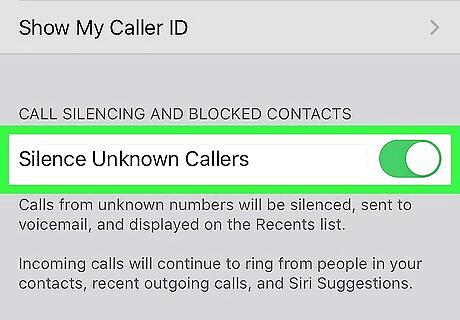Tap the switch to the on position iPhone Switch On Icon next to "Silence Unknown Callers." When you have this enabled, you will no longer hear when you have a call from an unknown caller, but those calls will be sent to voicemail and be listed in Recents. An unknown caller is a number that isn't found on your device, such as a number saved in your contacts list.