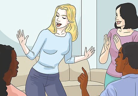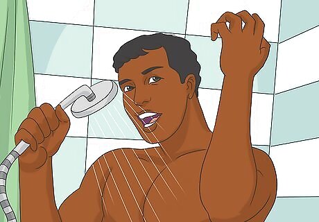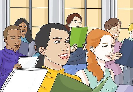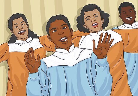 Join a choir. Participating in choir is not only a great opportunity to boost your community involvement, but it's a perfect learning opportunity to improve your singing technique and bolster your confidence. By singing in a group, you may feel less isolated and self-conscious than in singing individually. There is evidence that regular participation in group choral activity can greatly improve physical and mental health. Try harmonizing. Your singing voice may not currently be strong enough individually, but as a complement to the primary melody your voice may resonate beautifully.