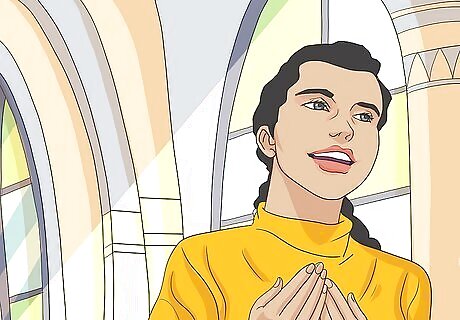Find out why singing is meaningful to you. The act of singing in church is considered a form of prayer. Focus on the fellowship. It is referenced within the Bible as being a way to praise God: "Sing and make music in your heart to the Lord," Ephesians 5:19. What makes singing powerful is the positive feelings it can bring. "Come let us sing for joy to the Lord," Psalms 95:1. Remember that you are singing for a community, which can be both comforting and empowering. There is nothing but love and support in the congregation. Search for a song that conveys your feelings of love, worship, and faith. There are even some contemporary songs that have deep religious meanings.