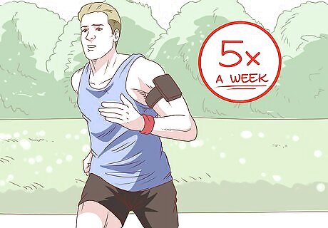 Find a time to exercise daily. For many people, the easiest time to work it in is in the morning. Some studies indicate a morning workout leads to more restful sleep. Many people prefer to exercise in the morning because it helps them to wake up and be energized for the day. It’s possible the exercise sets a body up for the rest of the day, exposing us to sunlight, and even aligning the circadian cycle for the day. You can also exercise in the late afternoon or early evening. Although you may already feel exhausted during this part of the day, exercise at this time may energize you for a few minutes, free up some room for dinner, and use up your remaining energy stores. Some studies even indicate afternoon exercise may be most beneficial for the circadian rhythm. On top of that, the energy release could cause you to have deeper sleep. As a result of increased body temperature and other factors, some recommend building in a buffer between working out and sleeping. Exercise before sleep, however, has been found in some studies to actually improve the quality of sleep.