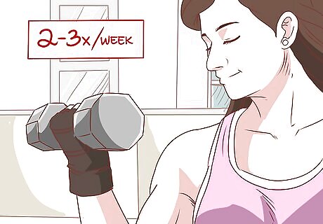 Pump some iron. Lifting weights has been shown to aid sleep in a variety of ways. Aim to lift weights two to three times per week with plenty of rest between muscle group sessions. Once you feel comfortable with a specific weight, make gradual 5–10 percent increases to the repetitions or the weight. Not only does strength training improve sleep, it also lowers weight and helps fight off sleep apnea. Weight lifting helps with depression. Since sleep is a time for muscle recovery, resistance training acts as a jump-start towards sleep. You may even fall asleep faster and make it through the entire night without interruption.