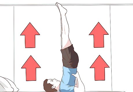 Do an upside down pose on your bed for two minutes. Align your buttocks with your headboard and put your legs in the air, on the headboard or the wall. Breathe in and out in slow deep breaths. If your hamstrings are tight, move your buttocks further away from the headboard. Some people are more limber, and if this pose doesn’t do it for you, scoot closer to the headboard. Try to relax as you stretch the backs of your legs.